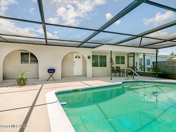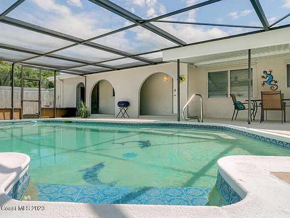 WOW!! This POOL home is completely redone with so many upgrades: new drain lines, A/C, impact windows, roof, tile floors, base boards, textured walls, paint inside/outside, recess lights, blinds, tropical oasis landscaping and so much more! Gourmet kitchen has all new white wood shaker cabinets, tile backsplash, stainless steel appliances and granite countertops. Home is located in a great location close to shopping, restaurants, Crunch Fitness center, and only 50 min to Orlando! ONLY a 10 minute drive to BEACH! All items, high-end furnishings negotiable. Currently home is an active Short Term Rental fully booked through end of March. Lots of potential for a great investment or make this your DREAM home.