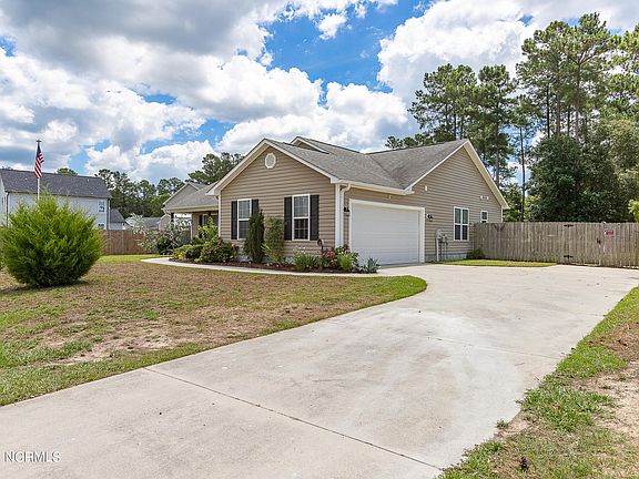 Welcome to your dream home in Richlands, NC! This charming 3-bedroom, 2-bathroom residence features scratch-resistant LVP flooring and unique touches like a custom barn door pantry and matching breakfast nook. Cozy up by the gas fireplace in the living room on those cooler winter evenings. The split floorplan includes well-maintained carpets in the spare bedrooms, while the master suite offers a spacious retreat with double closets. All appliances, including the washer, dryer, and refrigerator, are included. The fully fenced backyard boasts an established garden, chicken coop, rabbit enclosure, and playset. Plus, the extended driveway provides ample parking. There is a LENDER CREDIT for up to 1% when you work with Sally Herman from Movement Mortgage. Don't miss this gem!