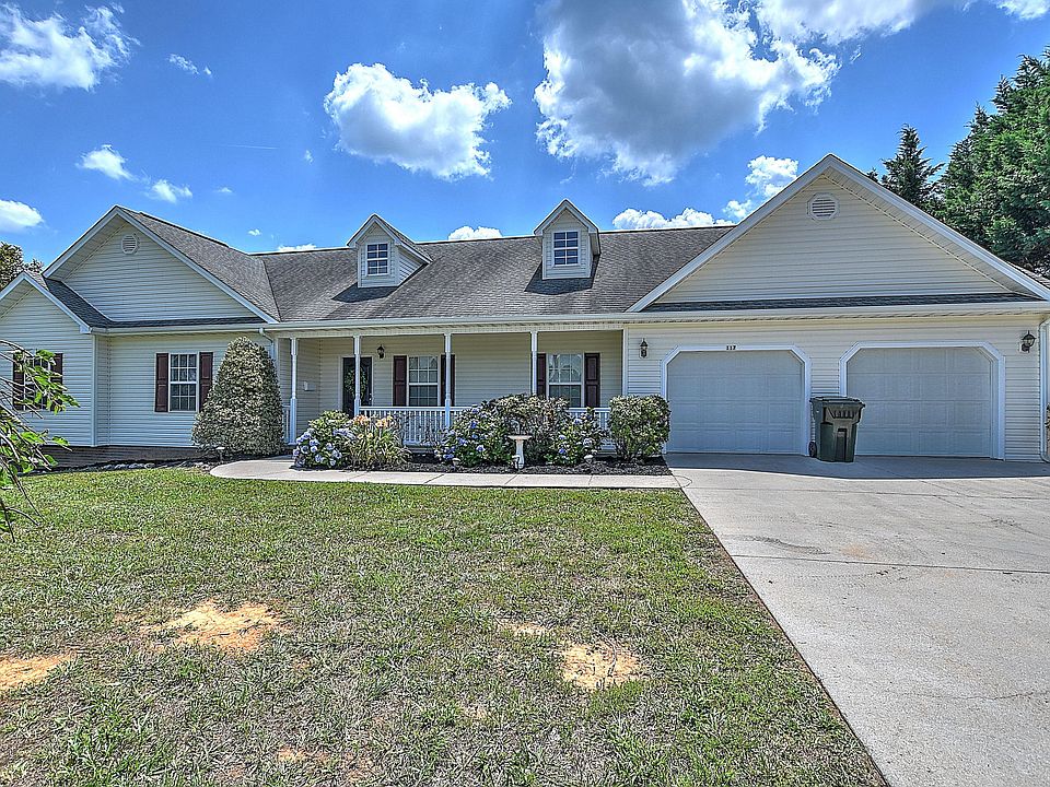 Enjoy one level living in this spacious open concept home with hardwoods throughout. The list of amenities for this home is endless: Corner lot with 1.48 acres available, million dollar views from the covered deck which is perfect for Sunday cookouts. The convenience of one level living makes this three bedroom 2 bath home a haven to live life in. Need space? How about 4 garage spaces and a full unfinished basement, plumbed for another bathroom or room for an extra kitchen.