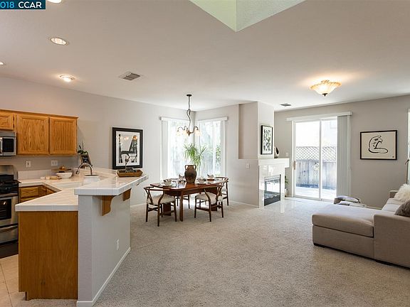 Gorgeous two story detached home in the desirable gated community of Vista Pointe! End unit located in a cul-de-sac with 3 bedrooms, 2.5 baths, over 1500 sqft with 2 car attached garage with full size driveway. Open floor plan with volume ceilings, fireplace in living room. Kitchen/living rm combo has Stainless Steel appliances, tile counters. Master Suite with walk in closet, dual sink vanity and deep oversized tub with separate shower. Light and airy, freshly painted throughout, with loft upstairs. Close to Award Winning Schools, Iron Horse Trail, shops, parks, restaurants, freeway, and walking distance to the new San Ramon downtown. Open House Sat 6/16 1:30-4:00pm & Sun 6/17 1:30-4:00pm.