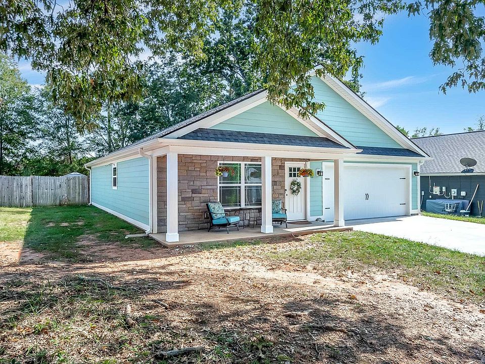 Welcome to your new oasis at 117 Shaw Street, where convenience and comfort unite in this charming Craftsman-style home, built in 2019. Just a leisurely 12-minute stroll away, you'll find the vibrant downtown Fountain Inn, a hub for exceptional dining and entertainment experiences. As you approach, the home's exterior showcases a tasteful blend of detailed siding and stone, setting the stage for your inviting front porch. Upon stepping inside the heart of the home boasts an impressive open-concept kitchen and living room with soaring vaulted ceilings, complemented by sleek stainless steel appliances and sophisticated granite countertops. This space becomes the epicenter for gatherings and cherished moments with loved ones. While the kitchen and living area steal the spotlight, the bedrooms and bathrooms offer their own unique allure. The bedrooms offer generous space for furniture arrangements, and the ample closets ensure your storage needs are met. Both full bathrooms feature double sinks, a thoughtful touch that adds an extra layer of convenience to your daily routine. Beyond the comforts of your home, you'll discover that convenience extends into the surrounding area. A mere five-minute stroll from your front door leads you to the serene Woodside Park. In addition to this tranquil oasis, you'll find an abundance of amenities nearby, including grocery stores, diverse dining options, and entertainment. This property represents an ideal marriage of a splendid home and a prime location. It's an opportunity to embrace a lifestyle where modern living meets accessibility, making 117 Shaw Street the perfect place to call home.