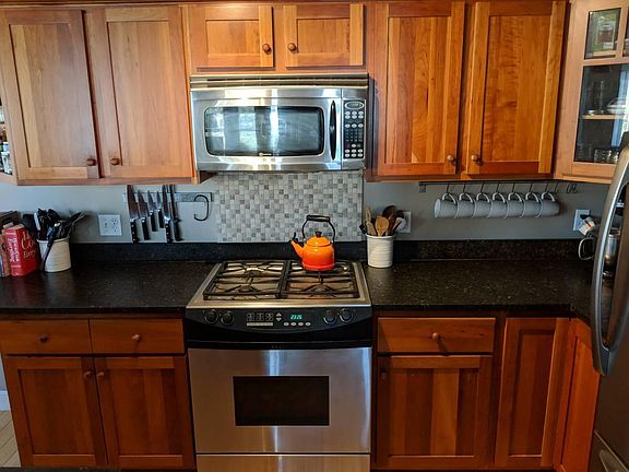 2 bedroom, 1.5 bath over two floors, this apartment has full view of the Mount Washington and Back Cove, either from the top floor or private deck. Bamboo floors throughout, hardwood kitchen cabinets, granite countertops, a gas stove/range, stainless fridge, breakfast bar, gas fireplace. Full bath includes updated marble vanity and lots of storage. Washer/dryer included in unit. Each bedroom has full closets and ceiling fans. Two dedicated off-street parking spaces, plus communal guest parking space. Property includes common storage area (bikes, etc), locked storage room, and private lawn area. Short walk to Fort Sumner Park, Hilltop Superette, Belleville Bakery, The Front Room, Rosemont, Otto's Pizza, Eastern Prom, East Bayside, Inner Washington Ave, Downtown Portland. Rent includes: heat/hot water electricity snow removal/lawn care common hallway cleaning service 6 month minimum lease, unfurnished, no-smoking, no cats, dogs negotiable. Gas, water included in rent. Solar farm provides majority of electricity, excess consumption to be billed quarterly. Any pets (limit 2) must not disturb other tenants.