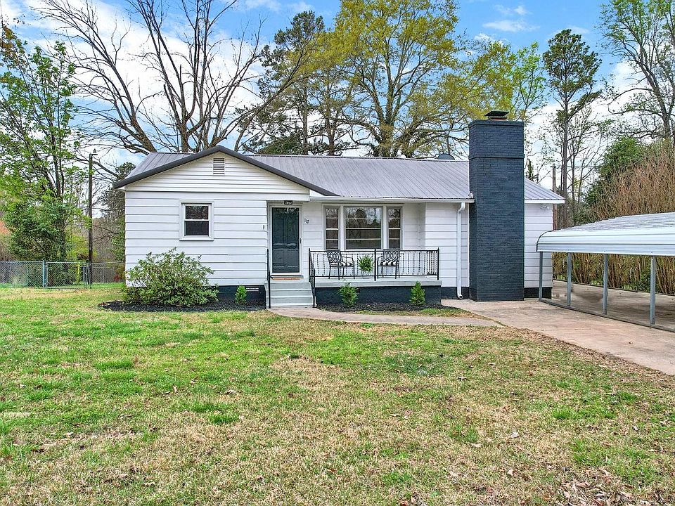 Beautifully remodeled home on a nice lot just outside city limits. This house is move-in ready and has everything at an affordable price. Gorgeous kitchen with granite countertops, refreshed cabinets, new sink, tile backsplash and stainless appliances. Family room has refreshed HW floors as do 2 of the bedrooms. Master BR has wood burning fireplace, built-in shelves and nice closet. Off the Master is a laundry room with brand new stackable washer/dryer included. Bath has been remodeled with tile floors, new vanity, new toilet, new hardware, etc. Light fixtures throughout have been updated. Deck has new deck boards. There is a fenced backyard and 2 outbuildings, 1 with power. Plus there is fresh landscaping, cute front porch for chairs and 2-car carport. All electric home (no gas). Some windows are vinyl and there is a metal roof. Some additional updates include new flooring in Master BR, sheetrock and fresh paint throughout. Just an adorable house with no subdivision rules and no HOA. Make an appointment to see this beauty before it is gone!