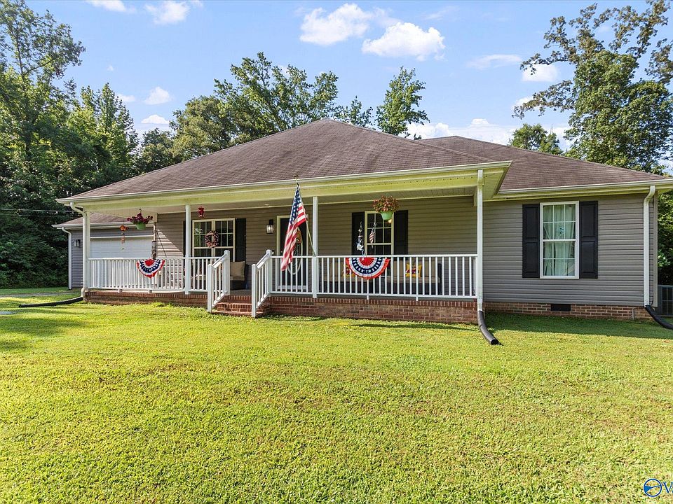Seeking privacy? This charming single-story home, nestled on 6.34 acres of wooded land, offers peaceful living with modern amenities. The 2-car garage leads directly into the kitchen, ideal for convenience. The eat-in kitchen features stainless steel appliances (excluding the dishwasher), a center island, and updated lighting. The living room, with serene woodland views through a large picture window, opens to a covered porch perfect for relaxing. The primary suite and living room boast trey ceilings. The fenced backyard offers a safe haven for pets and family gatherings, while the rear deck is ideal for outdoor entertaining and grilling. Schedule a showing today!