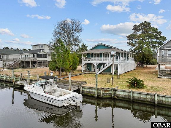 The moment you step inside this canal front oasis it feels like a warm Outer Banks hug. Cozy hardwoods greet you as you enter the open and spacious living room, perfect for relaxing after a day on the beach. The whole interior has been freshly painted in 2025.  Glide on over to the dining area overlooking the water, the perfect place to play a game or plan your next Outer Banks adventure. From there move on to the kitchen, which boasts ample cabinet and counter space, along with an inviting breakfast bar. Outside the kitchen area are double french doors, which leads you out onto the inviting wrap around covered porch with a true southern coastal vibe. Back inside just down the hall you'll find the primary suite, which connects to a bathroom and walk in closet. The spacious two additional bedrooms are connected by a user-friendly jack and jill bathroom. Finally, at the end of the hall you'll find the convenient washer and dryer. Down the stairs on the ground level you'll find a handy dry entryway, with plenty of room for extra storage. Outside is a covered parking area which leads to a roomy workshop with its own restroom, a must have for any woodworkers or home improvement enthusiasts. In the backyard you'll find the boat dock with shore power.  This backyard is an ideal spot to lounge in the sun or launch your kayak. Colington Harbour is a gated community that features a private community boat launch, a community pool (with add'l membership), a clubhouse available for private functions, a playground area and private beach, basketball courts and tennis/pickleball courts.  Be sure to check out the virtual guide and floorplans.