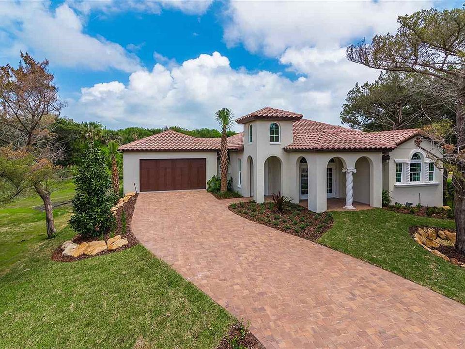 Located behind the gates of Pelican Reef on Anastasia Island, this new construction Mediterranean style home puts quality of construction and attention to detail in the forefront. From the top of the line engineered concrete piling system with commercial grade slab giving you the best foundation around, to the concrete block construction to the tile roof, everything is exceptional!