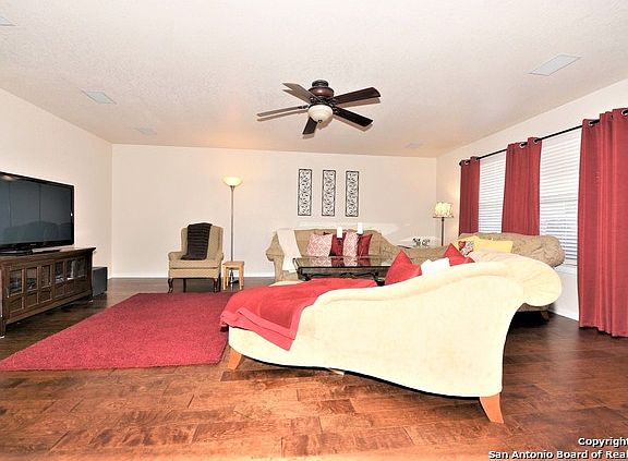 ABSOLUTELY GORGEOUS HOME IN A CUL-DE-SAC--ONE OF THE LARGEST LOTS IN THE NEIGHBORHOOD--PRIDE IN OWNERSHIP EXUDED THROUGHOUT--HARDWOOD FLOORS & CERAMIC TILE THRU-OUT DOWN--ISLAND KITCHEN W/GRANITE COUNTERS & BACKSPLASH--RAISED PANEL CABINETS W/CROWN--HUGE WALK IN PANTRY--MASTER BOASTS DEDICATED SITTING AREA/OFFICE--RELAX ON A COVERED PATIO OVERLOOKING ONE OF THE LARGEST BACKYARDS IN THE COMMUNITY--GREAT SCHOOLS K-12--QUICK ACCESS TO IH35, 1604, NEW BRAUNFELS, RANDOLPH, FT SAM, AND MANY SHOPPING CONVENIENCES!