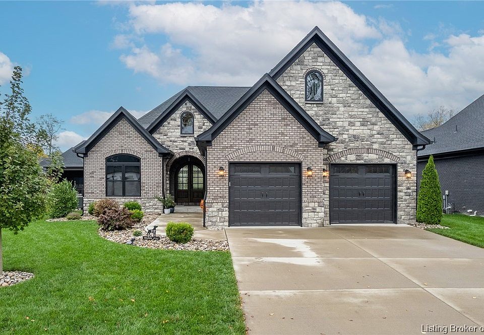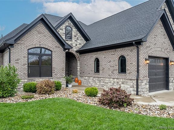 The JAMES Floor plan was exclusively designed for THE MANORS OF OLD SALEM. Ideally located, just three minutes from the NEW EAST END BRIDGE, this home sits on a large lot with SCENIC VIEWS and offers ELEGANCE at every turn. When you enter this 4 bedroom, 3 bath English Cottage style home, the 11 FOOT COFFERED CEILINGS, oversized windows, engineered hardwood floors and OPEN FLOOR PLAN take your breath away. The chef’s kitchen features a LARGE CUSTOM PANTRY, 10ft cabinets with custom LIGHTING and Ceiling DETAIL, QUARTZ WATERFALL counter tops, FARMHOUSE SINK, stainless appliances, and OVERSIZED ISLAND. The luxury continues in the primary suite, with BARREL CEILINGS, large SOAKER TUB, custom glass shower, dual granite vanities, and HUGE WALK-IN CLOSET. The split floor plan also provides a large laundry room, full bath and two other bedrooms on main level. The BASEMENT offers 9-FOOT CEILINGS, a spacious family room, 4th bedroom, full bath and provides plenty of storage! Homeowners will also enjoy their home’s own personal IRRIGATION SYSTEM and FIBER OPTIC CABLE, providing the Fastest Internet available in the region! Call today to schedule your private showing!
