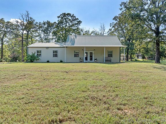 Looking for a peaceful lake house to call your own? This 2 bedroom metal home nestled on one acre would be perfect for a main residence, lake getaway, or VRBO. This 1.5 story home has a great layout with the main bedroom downstairs, and the second bedroom and loft area upstairs. This property is complete with a storage building with an overhead door perfect for storing your mower, lake toys, etc. You will fall in love with the large, secluded back yard. This home is located less than 2 miles away from Lake Texoma with super easy and convenient access to boat ramps in Lakeside Park, Johnson Creek Park, Newberry Creek Marina, and Willow Springs Marina. You will have an easy commute to Texas via Leavenworth Trail, Choctaw Casino and Resort in Durant, and Pointe Vista in Kingston with multiple indoor and outdoor attractions including West Bay Casino and Resort, Chickasaw Pointe Golf Club, and Catfish Bay Marina, as well as future attractions planned to open in early 2027. If Texoma lake life is calling you, call to schedule your showing today!