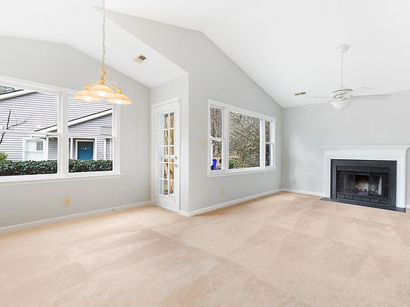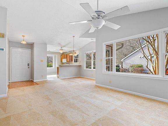 Welcome to 117 Standish Drive, a bright and airy single-story end-unit townhome minutes from everything Chapel Hill has to offer! This 2-bedroom, 2-bathroom home features an open floor plan filled with natural light, enhanced by additional solar tubes for a warm and inviting feel. The primary en-suite features an easy access walk-in shower. A new LG dryer, as well as LG washer and fridge, convey. Extra storage space above the garage with pull-down access. Enjoy the spacious side patio, perfect for relaxing outdoors, and take advantage of the private community amenities, including a serene lake, tennis courts, and open green spaces. With a single-car garage and an unbeatable location just minutes from Wegmans, top healthcare and schools, dining, and shopping, this home offers both convenience and charm. A fantastic investment opportunity, it's ready for your personal touch and creative updates—schedule a tour today!