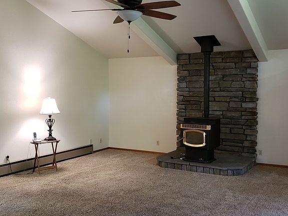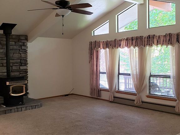 • Interior Features: Vaulted Ceilings, Window Coverings, Skylights, Flooring: Carpet, Flooring: Laminate, Wood Stove, Walk-in Closet(s), Ceiling Fan(s), Flooring: Linoleum/Vinyl, Countertops: Granite, Countertops: Tile