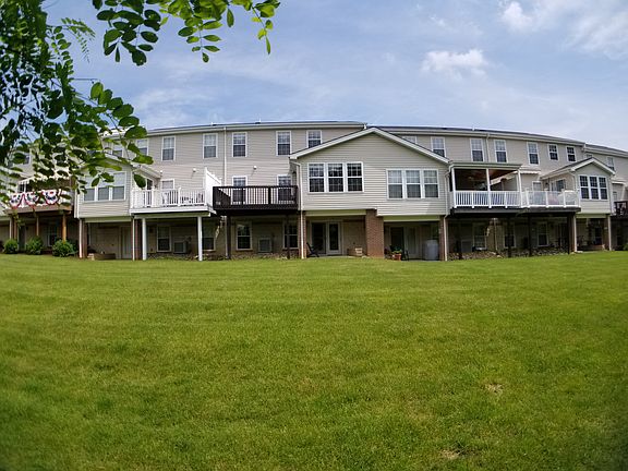 RARE maintenance free, single level living home on cul-de-sac. Steeplechase is a perfectly manicured sought after community for years now. When entering 117 Steeplechase one immediately is stunned by the amazing two story living room lit up with a skylight, sunlight bouncing off of the hardwood floors! The dining room area separates the living room from the updated kitchen. More cabinets than you will know what to do with a pantry, peninsula, a little space to put something like a bistro set, wine or coffee area. But wait, there is more! A sitting area in the back of the unit has a wall of windows allowing a view of the beautiful back yard. When the weather is nice, go outside on your huge deck to see the view! Laundry & master bedroom are on the main floor. Upstairs has an open loft, 2 bedrooms & a full bathroom. But wait, there is more! The basement is fully finished with a FULL kitchen, partial bathroom, storage room, gas fireplace & a door to yard!