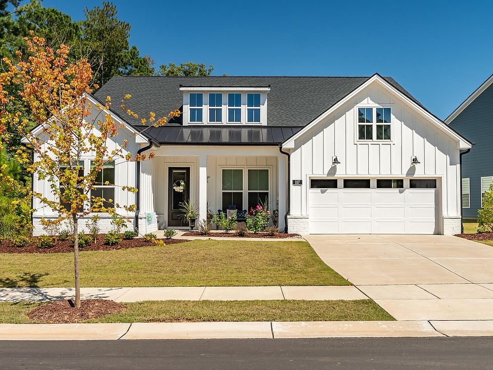 Beautiful 1 year young one level living at its finest. This Tahoma floor plan is one of the largest models available in this sought after vibrant 55 plus community. The home is open concept with a chef's kitchen, soft close cabinets, very large quartz island, great for entertaining and a spacious walk-in pantry. You will be impressed by the beautiful layout and high-end finishes. There is tons of natural lighting throughout home making it very inviting. Enjoy the peaceful screened in porch overlooking a nicely landscaped yard situated on corner of wooded lot next to home. The primary bath has large walk-in shower and separate soaking tub for a spa like serene setting. There are two additional large bedrooms for family or guests. This home features tons of aftermarket additions including an added powder room, linen closet, primary closet upgrades, wood beams on ceilings, an embellished fireplace, epoxy garage floor and tons of rhino shelving for maximum storage. Take advantage of resort style living with tons of amenities that also includes a social membership to12 oaks community including clubhouse with a fitness center, onsite restaurant, lovely pools, cabanas, pickleball courts, and an active adult community center. The Hoa includes lawn care, weed control and mulch. This home is located within minutes to tons of restaurants, shopping, Ting Park, entertainment and downtown Holly Springs with easy access to hywy 55 and triangle expressway. The amenity photos shown are of both Regency at Holly Springs and 12 Oaks community both of which you can enjoy. This home is not to be missed!