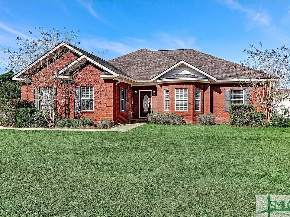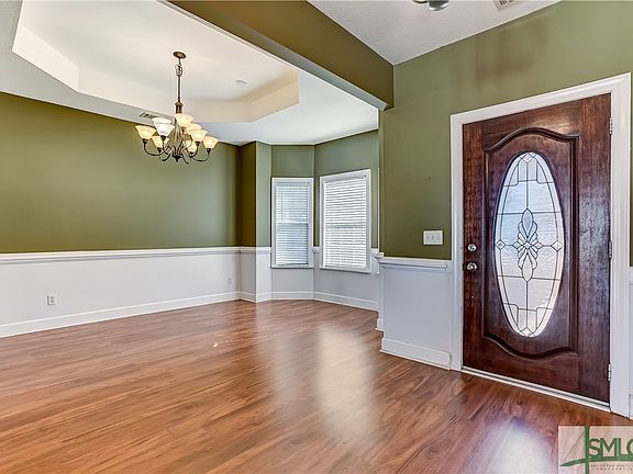 ALL BRICK BEAUTY- enjoy the new year in your new home! This beautiful all brick 3 bedroom, 2 bath home is located on an oversized corner lot in Rincon’s Stonewalk community. Inside you will find an open floor plan with wood laminate flooring throughout. The formal dining room with tray ceiling, bay window and chair rail molding is open to the great room complete with vaulted ceiling and excellent natural light thanks to two oversized windows flanking a set of full glass doors that lead to the patio. The eat-in kitchen extends off of the living room and boasts a large breakfast bar, white cabinets, solid surface countertops and tile floors. The large primary suite boasts tray ceiling, double vanity and garden tub. Enjoy the privacy your easy-to-maintain white PVC fencing provides for the backyard and the community amenities including a pool. Close to shopping, restaurants, I-95 and so much more!
