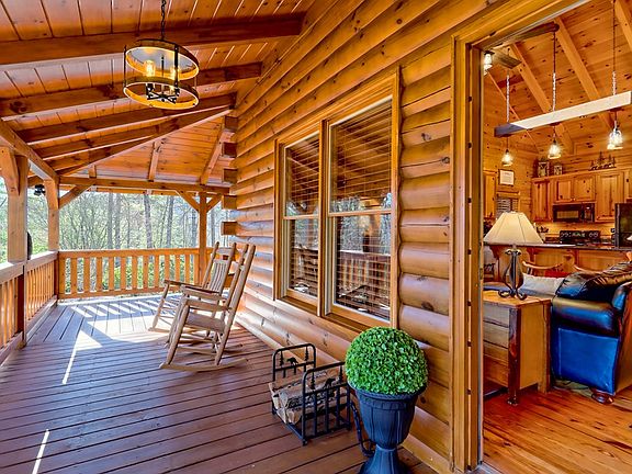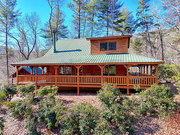 Open House 3/15. Welcome to your Rustic Mountain Retreat! Tucked away in the heart of the North Georgia mountains, this charming rustic cabin offers the perfect blend of privacy, comfort, and nature. Explore this private, gated community! This home is a true mountain retreat with a covered wraparound porch extending all the way around the cabin! Are you ready to sip your morning coffee on the cozy porch or just relax in the evening with soothing sounds of nature? Inside, the warm glow of a stone fireplace makes the living space feel cozy as the seasons change. Picture yourself curled up with a book on a crisp autumn evening, with the warmth of a fire going inside and the cool invigorating mountain air outside. Large windows throughout the home bring the outdoors in, offering stunning views of the fiery reds and golds of fall, the fresh blooms of spring, as well as the occasional dusting of winter snow. The main level features two guest bedrooms and a full bath, perfect for guests or family, while the primary suite provides a private retreat with its own bath and scenic views of the mountains and the treetops. Just steps away from the main home, a spacious detached rec room adds even more room for fun and relaxation! This versatile space has a kitchenette, a lounge area, and room for games, making it the ultimate retreat for family gatherings, movie nights, or just entertaining guests. Whether you're looking for a peaceful full-time residence, a rustic mountain getaway, or a potential short term rental, this home has endless possibilities! Located just a few miles from Vogel State Park, you're never far from outdoor adventure. Hiking enthusiasts will love the proximity to the Appalachian Trail, as well as countless other scenic trails weaving through the Blue Ridge Mountains. Nearby, Helton Creek Falls offers a breathtaking double waterfall, and a short drive takes you to Brasstown Bald, Georgia's highest elevation, where panoramic mountain views stretch for miles.