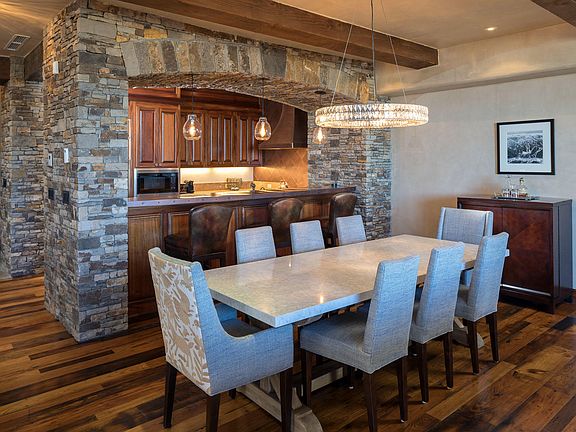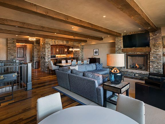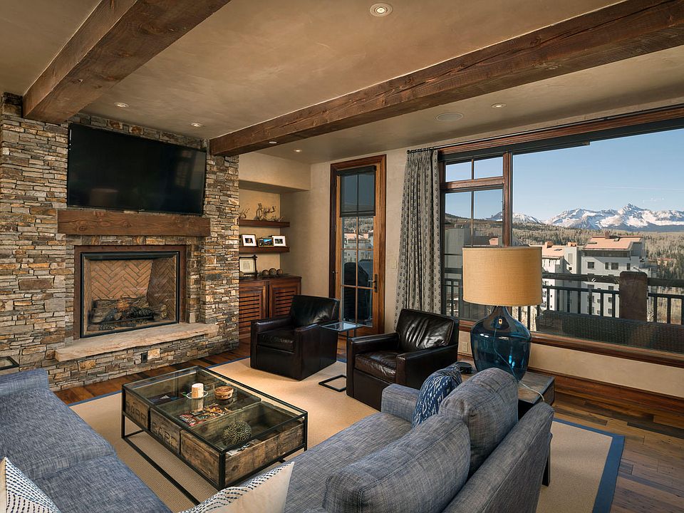 Exceptionally-furnished 3-Bedroom / 4-bath residence in See Forever Village's finest building. The owners have decorated the property in warm & timelessly-stylish interiors, even adding wood floors throughout the Master Suite to complement the rich walnut & mahogany trim, base & case found throughout. Native stone, imported marble & tile, custom built-ins, wool carpeting and top-of-the-appliances punctuate an open living area & 3 generous suites with expansive balconies looking over the Village, Telluride Ski Resort and out to western sunsets. Heated underground parking & storage.