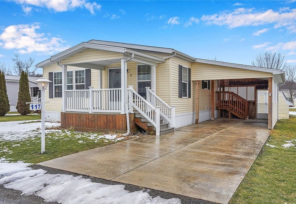 Welcome to 117 Sunset Lane in Arcade Valley Estates! This 2014 52x28 all Arcade electric manufactured home offers easy, low-cost living with garbage pickup, water, and sewer included in your lot rent. Step inside to discover a meticulously maintained interior with brand new luxury vinyl plank floors installed within the last 2 years. Enjoy the open floor plan, primary bedroom with en-suite, central A/C, and a generously sized mud/laundry room. Outside, find convenience with an attached 3-sided carport, a shed with electric, and a relaxing covered front porch. Don't miss out on the opportunity to make this your own!