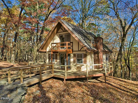Really nice Traditional Chalet in Pocono Mountain Lake Estates community. Featuring 4 bedrooms and a large living, you will find extra living space to be had in the unfinished basement. Basement has inside access as well as walkout access. All Bedrooms have sliders to decking. Living room has a pellet stove for an alternate heat source and access to deck. This was a primary home for a well known musical personality that performed with many famous music superstars of the 30's, 40's, 50's 60's and was a performer in the Tonight Show Band with Tommy Newsom and Doc Severinsen.