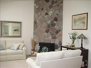 TRANQUILITY AND SOPHISTICATION DESCRIBE THIS CONDO. WHITE ON WHITE COLOR SCHEME IS ELEGANT,RESTFUL AND JUST STUNNING! GORGEOUS STONE FIREPLACE SOARS TO THE VAULTED CEILING,CABINETS GALORE IN KIT WITH CORIAN COUNTERS,SHARP CAROUSEL MICROWAVE, BUTCHER BLOCK INSERT,GLEAMING CERAMIC TILE FLOOR, DINING AREA COMPLETE THE KITCHEN. EXTRA CABINETRY IN BATHROOMS, BALCONIES OFF BOTH BEDROOMS AND ATTIC STORAGE A BIG PLUS. YOU WON'T BE DISAPPOINTED!