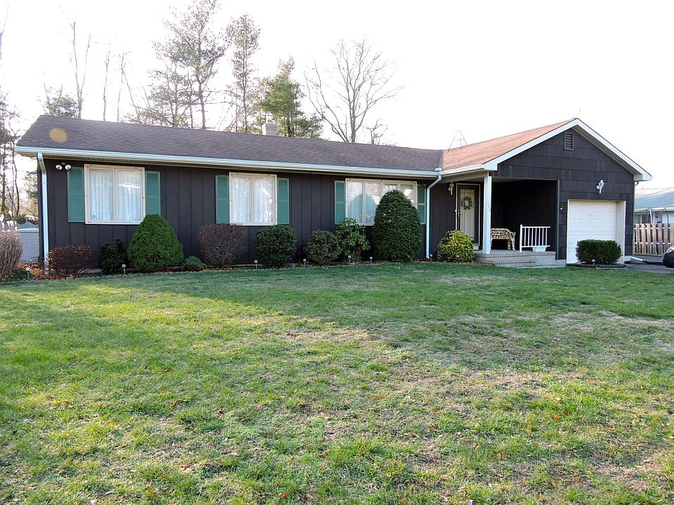 SHARK RIVER GOLF ESTATES. Big ranch on a big lot. Eat in kitchen, Dining Room, Family room with fireplace. 3 bdrms , 1 1/2 baths, garage, full basement. Hardwood floors, central AC. Desirable location Fenced back yard borders land owned by NJ water company.. AS IS sale Original owner. Great opportunity. Don't miss it.