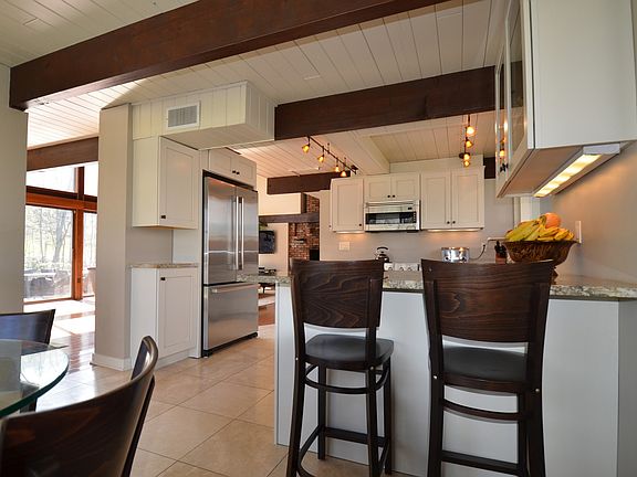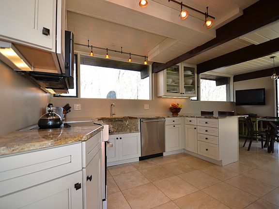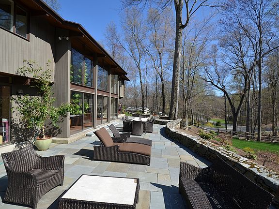 Renovated artistic & chic Mid-Century style home built in 1976. Sited on 1.55 professionally landscaped private property in lower Easton. Dramatic 2 story living room with fireplace and sliders to private, expansive blue stone patio with stone surround. Enjoy beautiful views of this tranquil setting. Large master suite with spa bath & plenty of closet space. Kitchen has top of the line Viking appliances & granite counter tops. Lovely family room has sliders to the patio & the laundry room boasts newer top of the line washer and dryer. Driveway has heated coil for the winter Central air & a 2 car oversized garage gives this sun filled home everything you would want. Just move in and enjoy!14 minutes to the train & close to amenities.