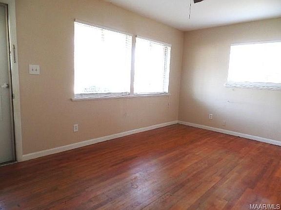 Cute house with beautiful wood flooring welcoming you as you enter the pretty living room. The kitchen is roomy and bright and leads to a wonderful covered back porch. The pretty hall bathroom has been updated with a new vanity and pretty ceramic tile. . The vinyl siding and flood lights are less than 4 years old. Additionally, the privacy fence and detached storage are 2+/- years old. The location is convenient to a variety of shopping opportunities and a short drive to the interstate and Hwy. 31 which is an alternative route to Maxwell AFB and Montgomery. This sweet home is located within walking distance to a large park which includes tennis courts, a playground, and ball field. TAKE A WALK TO THE PARK!