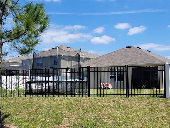 This single story layout optimizes living space with an open concept kitchen overlooking the living area and the outdoor covered lanai. The kitchen comes with all appliances, including a refrigerator, dishwasher, electric range, and microwave. The owner's suite, located at the back of the home for privacy, has an ensuite bathroom. Two additional bedrooms share the second bathroom. The third bedroom is located near the laundry room with included washer and dryer. The property also includes a large fenced-in backyard, screened-in front and back lanai, and ceiling fans installed in all rooms and exterior porch. There are extra shelving throughout, garage hanging storage, and the landscaping upgraded with river rock.