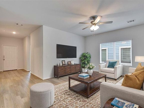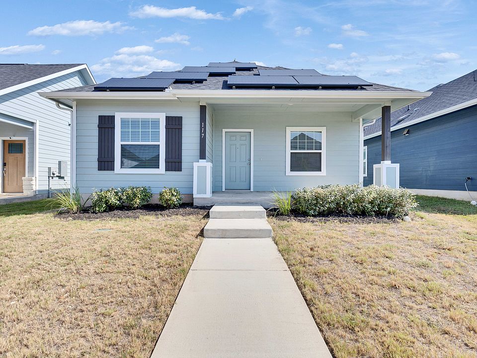 This charming one-story home is waiting for you! Enjoy a spacious open floor plan filled with natural light. The kitchen comes equipped with a refrigerator, dishwasher, microwave, and plenty of storage. The primary suite features a dual vanity, walk-in shower, and a large walk-in closet. Ceiling fans throughout provide year-round comfort. Additional highlights include a private backyard, electricity via solar panels, washer/dryer, and pet-friendly living. Don't miss out on this opportunityAPPLY TODAY!