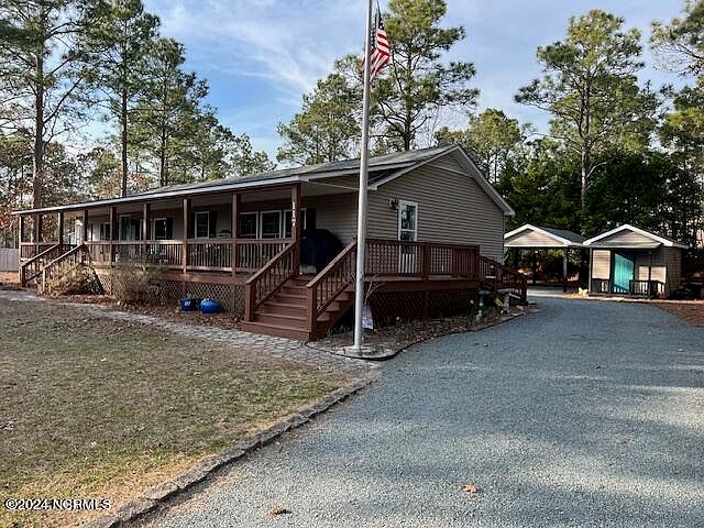 Turn-key home on .72 acres with gorgeous lake view! This 3BD/2BA home has been tastefully updated throughout. Recent upgrades include, roof 2022, HVAC 2019, 2022 water heater, LVP flooring throughout, coastal paint colors, dishwasher, stove, newly painted wood cabinetry and quartz countertops in kitchen, partially fenced backyard, adorable storage shed, carport, huge beautiful front porch overlooking the lake,