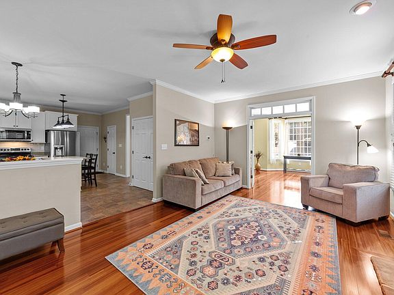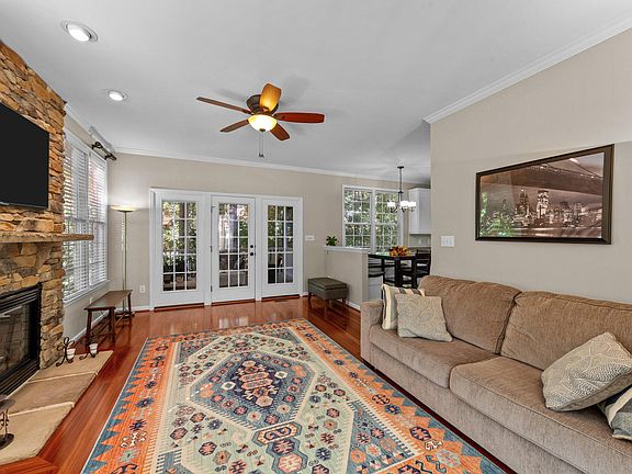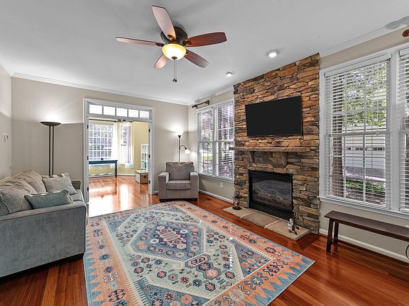 Welcome to this beautiful two-story home on a private, wooded lot in the sought-after Glen Laurel golf community! With 4 bedrooms, 2.5 bathrooms, and nearly 2,600 sq. ft. of living space, this home offers an ideal layout for both everyday living and entertaining. As you step inside, you'll find a formal dining room just off the foyer. The versatile living room, featuring a bay window, could serve as an office space and opens into the inviting family room with a stone fireplace. The eat-in kitchen boasts an island, stainless steel appliances, and updated cabinets. Beautiful hardwoods throughout the main floor! Upstairs you will find the owner's suite, featuring a granite dual vanity, a tiled walk in shower, soaking tub and a walk-in closet. Two additional bedrooms, a spacious bonus room as well as the laundry room complete the second floor. Both the family room and bonus room are wired for surround sound, perfect for movie nights or entertaining guests. The finished third floor offers flexibility as a fourth bedroom or bonus space, along with additional unfinished storage. Step outside to the screened porch and grilling deck that overlook the fully fenced, private backyard, creating the perfect outdoor retreat. This home also includes a side-load two-car garage and an irrigation system. Located near the side entrance to the neighborhood means it is in walking distance to the elementary school. You'll also enjoy optional use of the Neuse Country Club, which features golf, swimming, and social memberships, along with the 918 Bar & Grill. This home truly has it all—schedule your private showing today!