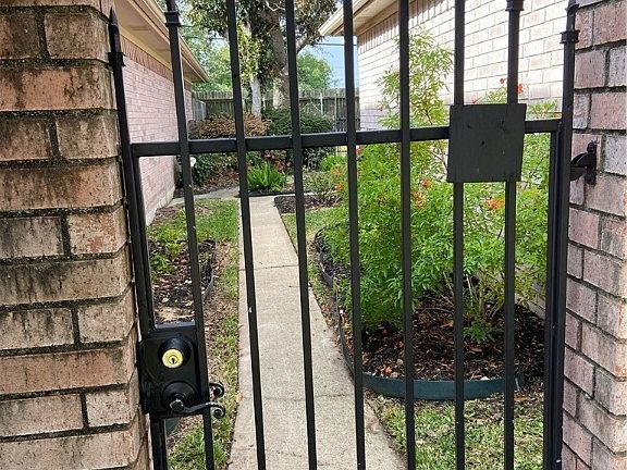 Comfortably arranged Garden-Style home with 3 bedrooms, and 2 baths. Enjoy the large living, dining, and kitchen open area to be a part of all that goes on. Display your collectibles, books, and more on built-in shelving and cabinets in the living and dining area. The main ensuite bedroom/bath with a walk-in closet covers the entire width of the back of the home. The pass-through at the kitchen island makes serving drinks, snacks, and goodies easy to do. The walk-in pantry shelving and storage area are a bonus in addition to the cabinet next to the refrigerator. The side iron gate opens to the backyard and patio. The backyard is fenced (chain link) with another gate allowing room for a separate area for play or for your pet when entertaining on the patio. You will appreciate living on this light traffic Cul-de-sac street.