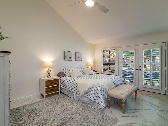 Incredibly updated condo in the most coveted section of Desert Falls CC. Single-story at the top of a tranquil cul-de-sac, this completely renovated unit has it all. The kitchen has had walls removed to incorporate the trending open feel that is so sought after. New tile through out, new bathrooms, freshly painted. The home is very spacious, with soaring ceilings and French doors that lead to the open extensive backyard that quickly offers views of its meandering streams, lush landscaping and everything that is fitness.- pools, pickleball and golf. Two master bedrooms, two full baths - on opposite ends of condo- A very private courtyard entry. Two car garage. Partially furnished. This is the one you have been waiting for. Desert Falls is known for it's Tennis & Pickleball as well as it's resort style Championship Golf course! SCPGA dubbed Desert Falls as one of the top 10 courses and the Best Place to Buy. Close to everything, Best, upscale market shopping, cafe's, retail, Great restaurants, 7 minutes to Eisenhower Medical Center, 20 minutes to the Palm Springs A/P, and close to the I-10 Freeway.