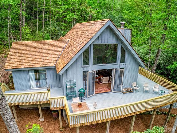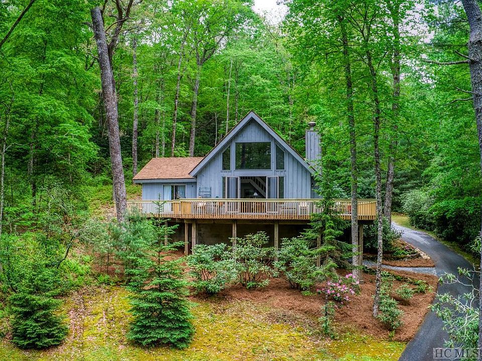 Charming cottage in the heart of High Hampton's Sheep Laurel section is a great entry level home for this community. Great room has soaring pine sheathed ceiling and wood burning fireplace. Streamlined galley kitchen is off the dining area and also accesses the laundry/mudroom area. The cheerful master bedroom has access to the open deck, cathedral ceilings. One guest bedroom is located on the main floor and the second is upstairs with private bath. New roof, new railings, upgraded stone lined dry stream beds all add to the attractiveness of a High Hampton cottage in this price point.
