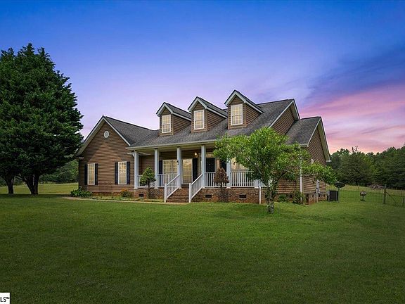 Discover your own private sanctuary on this exceptional 12-acre property featuring a well-appointed 1,827 square foot home with classic country charm. This single-story residence boasts three dormers, a welcoming covered front porch, and attractive vinyl siding with brick accents that perfectly complement the rural setting. With no HOA. Step inside to find an open-concept living space enhanced by vaulted ceilings and ceiling fans throughout. Beautiful hardwood-style flooring flows seamlessly from room to room, creating a cohesive and inviting atmosphere. The spacious living area features neutral paint colors and crown molding add elegant touches throughout the home. The heart of the home showcases a well-designed kitchen with rich cherry cabinetry, granite countertops, and a center island offering convenient breakfast bar seating. Stainless steel appliances complete this chef's dream, while the adjacent formal dining room provides the perfect setting for entertaining family and friends. The master suite offers a private retreat with a luxurious walk-in shower, garden tub and dual vanities for added convenience. The true treasure of this property lies in its magnificent outdoor space. Two parcels combine to create 12 acres of completely fenced land, ideal for horses or livestock in the fenced pasture. Two natural creeks meander through the property, adding both beauty and a peaceful soundtrack to daily life. Mature trees provide natural beauty and complete privacy, while an outbuilding with electricity serves perfectly as storage, workshop, or hobby space. The two-car attached garage adds modern convenience to this country setting. Location couldn't be more ideal, with the property situated just minutes from the scenic Nine Times Preserve and close to Table Rock State Park, offering endless opportunities for hiking and outdoor recreation. Despite the tranquil rural setting, you'll enjoy convenient access to both Clemson University and Greenville, creating the perfect blend of country living with urban accessibility. This rare offering combines the tranquility of rural acreage with modern conveniences and an ideal location. Whether you're seeking a horse property, a family retreat, or simply room to roam, this exceptional estate delivers it all. The combination of quality construction, thoughtful design, and spectacular acreage makes this a truly unique opportunity in today's market.