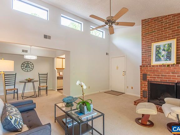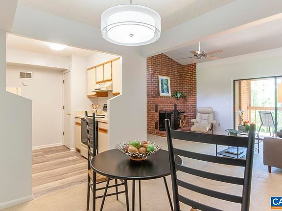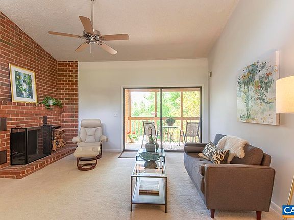 Sellers now offering $5000 closing credit with acceptable offer! Welcome to this beautiful and bright top floor 2 bedroom, 2 bath condominium just minutes to UVA, Stonefield shopping and Trader Joe’s, Whole Foods, Route 29 and Historic Downtown. The vaulted ceilings and high windows in the main living area along with the balcony invite sun into the living room all year. This is a true retreat with an open and spacious floor plan, balcony set amidst the tree canopy, and a floor to ceiling wood burning brick fireplace with wood storage box. Brand new luxury vinyl plank flooring in the kitchen and bathrooms and new dining room chandelier. Tons of closet space with walk-in closets in both bedrooms and a large closet in the hallway in addition to a dry storage room on the balcony. Sizable laundry room with washer/dryer that convey. The community offers an outdoor pool, two tennis courts (one with Pickleball!), playground and clubhouse with exercise room. There is also an events space with a small kitchen that can be rented for private events. Easy living convenient to all things Charlottesville!