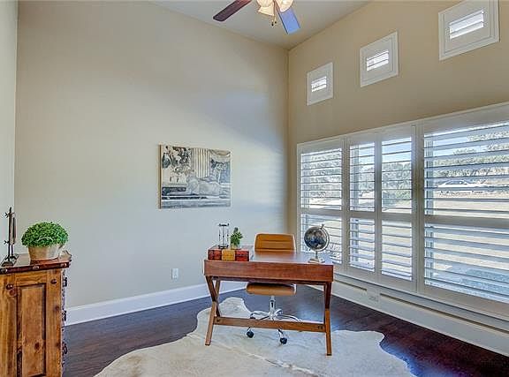 Call/Text Morgan Smith to show 512-466-5224. Immaculate one story situated on over an acre of park like grounds with a coveted RV garage. The Woods is a beautiful neighborhood with a friendly feel. Over 100K in improvements put in since purchase. Split bedroom floor plan is thoughtful with master suite tucked away and three large bedrooms with flex space separated by gorgeous barn door. Spacious great room is open to the kitchen and perfect for entertaining. Private study located just off of the foyer. Solid surface floors throughout most of the home. Large covered patio with built-in grill and ceiling fan is perfect for relaxing and looking out onto pristine manicured grounds. Private brick wall put in back of property as well as wrought iron fencing part of which is easily removable. 3 car garage attached & RV/Boat garage is detached. Only 2 miles from Lake Georgetown.