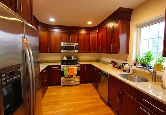 STUNNING 3 level townhouse- Modern, construction in the best part of Brighton only seconds to Cleveland Circle, Brighton Center and Brookline. This spectacular home has 3 large bedrooms, 2.5 marble baths, shiny hardwood floors, & recessed lights throughout. Open layout is great for entertaining & living room has a nice gas fireplace. Chef's kitchen features granite counters, stainless appliances & custom cherry cabinets. Tons of closet space & storage. laundry machines in the unit, deck & central AC. 2 garage parking plus 1 tandem outside the garage. Walk to T, bus stop literally right outside. EASY route to HARVARD or CHILDREN Hospital Property is very well maintained in high owner occupancy circle