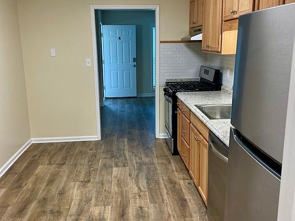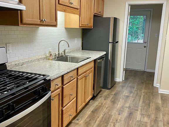 Beautiful fully remodeled 2 bedroom/1 bathroom brick duplex in Tyrone. New Paint throughout, New LVP flooring throughout, updated kitchen with solid countertops, backsplash and stainless appliances. Bathroom with tile floor. Separate laundry room with storage, large bedrooms with tons of closet space and nice front and back yard. Back yard is very private with privacy fence between patios and overlooking woods.