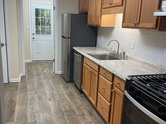 Beautiful fully remodeled 2 bedroom/1 bathroom brick duplex in Tyrone. New Paint throughout, New LVP flooring throughout, updated kitchen with solid countertops, backsplash and stainless appliances. Bathroom with tile floor. Separate laundry room with storage, large bedrooms with tons of closet space and nice front and back yard. Back yard is very private with privacy fence between patios and overlooking woods. Lawn Care Included