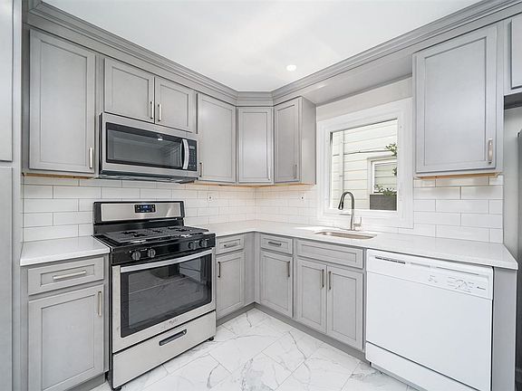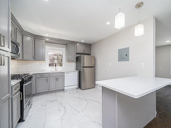Just renovated! Be the first to live in this spacious 3 bedroom apartment since the entire kitchen and bathroom has been updated with gorgeous modern finishes! You will love the light and bright kitchen, complete with soft-close grey cabinets, quartz counter tops and stainless steel appliances including dishwasher. Highly desirable open concept floor plan, the breakfast bar overlooks both the kitchen and dining room which will elegantly accommodate a full dining room table. Freshly painted, recessed lighting, refinished hardwood floors, new windows, and central air conditioning & heat. All of this in Bayonne's premier Bergen Point neighborhood, so close to the 8th Street Light Rail Station, buses, restaurants and shopping. No pets. A must see!