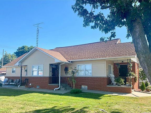 Radiating great curb appeal, this 3 bedroom, 1.5 bathroom home in Roodhouse is worth your time to explore! Check out all the updates done in a 2022 remodel – HVAC, roof, flooring throughout, fresh paint, bathroom updates, appliances (all of which stay including stainless steel fridge, range/oven, microwave plus washer and dryer!). Hot water heater new in 2020. Detached 1-car garage. Nice vinyl fence. Unfinished basement. Home is located on a corner lot across the street from the ice cream shop and central city park.