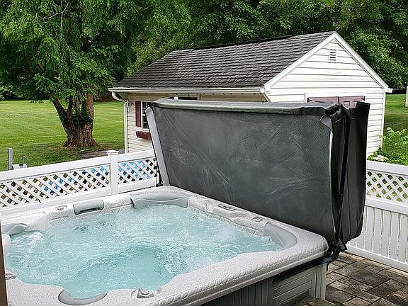 Lovely cape cod home on a flat corner lot, with 1st floor master suite and laundry. Handicap accessible, walk-in shower. 2 lg bedrooms and bath upstairs. 2 propane fireplaces. Full attic above attached 2 car garage. Large shed and full basement. Beautiful 3 season sunroom with sliding doors all around. A cozy fenced in patio with honeysuckle covered pergola beside the hot tub. Lots to love with this house. This is a do not miss opportunity!