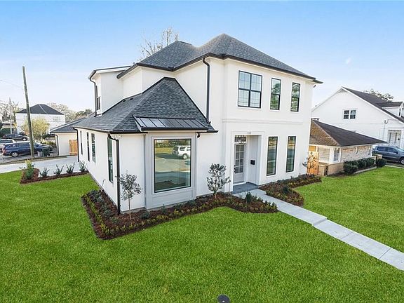 Stunning home on corner lot in the heart of Old Metairie. This 5 bed 3.5 bath home features custom finishes throughout, high ceilings, primary bdrm down, gourmet kitchen w/Thermador stainless steel appliances, quartz tops, custom cabinetry, elevator capable, gas fireplace, unique ceiling design, outdoor kit, surround-sound wiring & speakers, security system, central vac, TV living rm, TV patio, Plantation shutters, 2nd washer and dryer in Primary suite laundry area. Best flood zone. Desirable neighborhood.