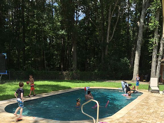 BEAUTIFUL Move-in ready home situated on a large wooded lot just minutes from the heart of Goose Creek. Home has 3 bedrooms 2 bathrooms AMAZING Heart Pine wood floors throughout the main areas of the home. Kitchen is equipped with stainless steel appliances Corian countertops and recessed lighting. The living room features a wood burning fireplace and gorgeous vaulted ceiling with wooden beams. As you walk down the wide hallway you will find spacious bedrooms with fresh paint and new carpet. The Master bedroom has a spacious walk in closet and on-suite master bathroom. The secondary bathroom has an oversized stand up shower and separate soaking tub. Upstairs you will find a finished FROG. In ground salt water pool is located in your PRIVATE backyard. 2 car attached garage PLUS workshop