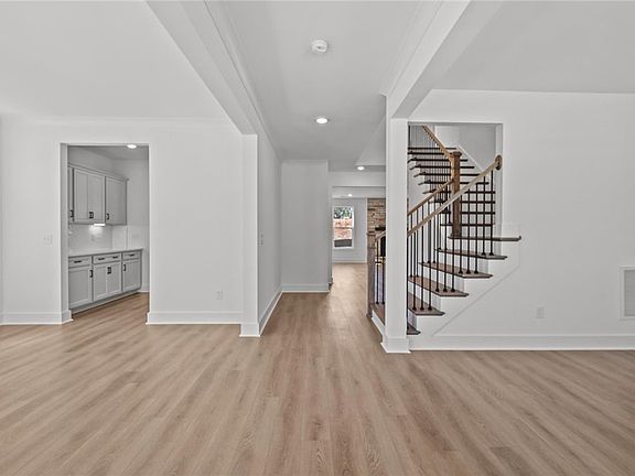 perfect for entertaining. Entering the foyer from your covered front porch you have a living room for additional living space or even a home office. To the right of the entry, you have your dining room which leads into your butlers pantry that gives you that extra counter space and walk in pantry. Coming into the open kitchen and great room, you will love the large windows that give so much natural light and a cozy gas fireplace. Features of the kitchen include beautiful off white cabinetry, white Quartz countertops, tile backsplash, center island with sink for additional seating, under cabinet lighting, and stainless steel appliances including a gas range/oven. There is also a bedroom and full bath off the