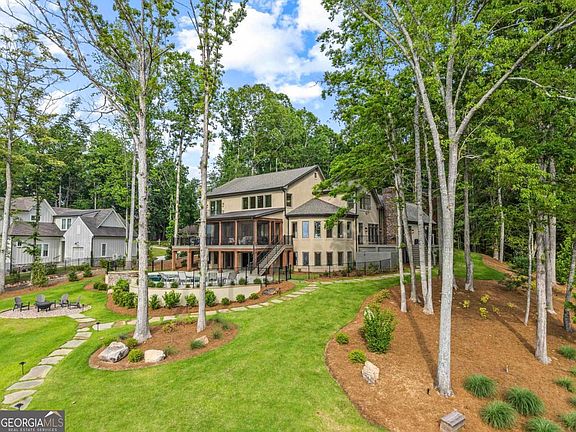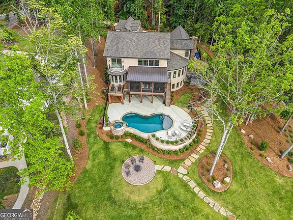 OUTSTANDING PANORAMIC VIEWS - 6BR/6.5BA LAKEFRONT HOME IN REYNOLDS AT GREAT WATERS!! WELCOME TO YOUR STUNNING LAKESIDE RETREAT, COMPLETELY REMODELED IN 2024 AND BOASTING OVER 325 FT OF LAKEFRONTAGE WITH UNPARALLELED VIEWS. THIS EXCEPTIONAL HOME FEATURES AN OPEN FLOOR PLAN DESIGNED FOR MODERN LIVING AND ENTERTAINMENT. WITH SOME OF THE BIGGEST VIEWS OF THE LAKE AND AMPLE SPACE FOR ENTERTAINING, THIS HOME IS A MUST-SEE FOR THOSE SEEKING LUXURY, COMFORT, AND UNPARALLELED LAKESIDE LIVING. DISCOVER YOUR NEW OASIS WHERE EVERY DETAIL EXUDES SOPHISTICATION AND RELAXATION. UPON ENTRY, YOU ARE GREETED WITH A TWO-STORY FOYER AND A GREAT ROOM WITH SLIDING DOORS AND A WALL OF WINDOWS THAT PROVIDES PANORAMIC LAKE VIEWS!! STEP OUTSIDE ONTO THE SCREENED PORCH OVERLOOKING THE NEWLY BUILT POOL AND FIRE-PIT AREA, PERFECT FOR AL FRESCO DINING AND RELAXATION. PREPARE CULINARY DELIGHTS IN THE GOURMET KITCHEN WITH TOP-OF-THE-LINE WOLF AND SUB-ZERO APPLIANCES, A LARGE QUARTZ-TOPPED ISLAND, LAKESIDE DINING, AND A WALK-IN PANTRY. HARDWOOD FLOORS FLOW THROUGHOUT, COMPLEMENTING THE ELEGANT AESTHETIC. THE OWNER'S PRIVATE WING FEATURES A SPACIOUS FIRESIDE BEDROOM, A PRIVATE STUDY, AND A LAKESIDE SITTING AREA. THE LUXURIOUS BATHROOM HAS DOUBLE VANITIES, HIS/HER CLOSETS, AN OVERSIZED WALK-IN SHOWER, AND A RELAXING GARDEN TUB. UPSTAIRS PROVIDES TWO ADDITIONAL EN-SUITE BEDROOMS AND A COZY SITTING AREA WITH 1/2 BATH. THE MAIN HOUSE HAS 6,796 SQFT AND ABOVE THE 3-CAR GARAGE IS AN EXPANSIVE BUNK ROOM/IN-LAW SUITE WITH A FULL BATH IDEAL FOR GUESTS OR EXTENDED FAMILY. THE TERRACE LEVEL IS AN ENTERTAINER'S DREAM FEATURING TWO BEDROOMS, 2 BATHS, AN EXERCISE ROOM, YOGA/FLEX ROOM, AND A FULL BAR COMPLETE WITH REFRIGERATOR, DISHWASHER, AND ICE MAKER. LARGE SLIDING DOORS PROVIDE EASY WALK-OUT ACCESS TO THE LAKESIDE OASIS, INCLUDING A GORGEOUS POOL, JACUZZI, FIREPIT, A MAX DOCK WITH DEEP WATER, AND OVER 325 FEET OF WATERFRONTAGE WITH A NEW SEA WALL. DON'T MISS THE OPPORTUNITY TO OWN THIS MAGNIFICENT LAKEFRONT RETREAT IN REYNOLDS AT GREAT WATERS!! GOLF MEMBERSHIP IS AVAILABLE.