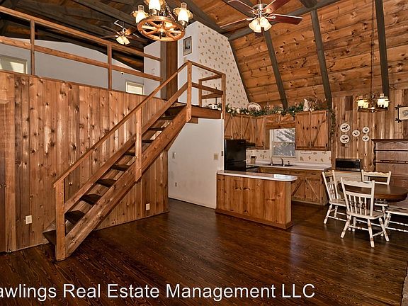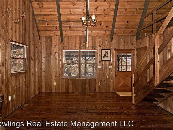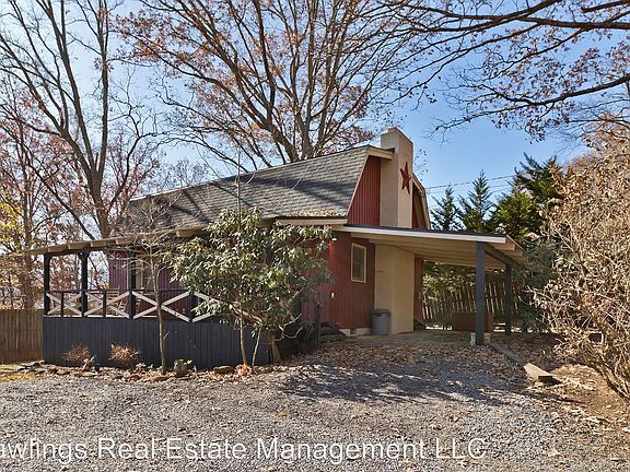 Sweet Cabin with Loft in Swannanoa - Charming cabin on nearly an acre in Swannanoa, with beautiful newly-refinished hardwood floors, wood paneled walls and ceilings, a large loft, and wonderful outdoor space with winter mountain views. The main level includes an open great room featuring airy vaulted ceilings and a wood burning fireplace with stone surround. The kitchen includes the attractive rough sawn cabinets, stainless electric smooth-top range, and refrigerator. The main level hall leads to the two bedrooms and full bathroom which has a bathtub/shower. This bathroom also contains the stacked washer and dryer, which are included. The loft includes a closet and half bathroom and offers great additional living space - perfect for your den, office, or 3rd bedroom! Outdoor spaces include the covered front porch, attached carport, and wonderful yard with mature trees and grassy lawn. The detached storage shed is not available for tenant use. Central heat (newer oil furnace); no air conditioning but owners will be happy to provide portable air conditioner unit for cooling. No smoking. No cosigners. One small pet negotiable under 30 lb. No large dogs will be considered. (RLNE5349034)