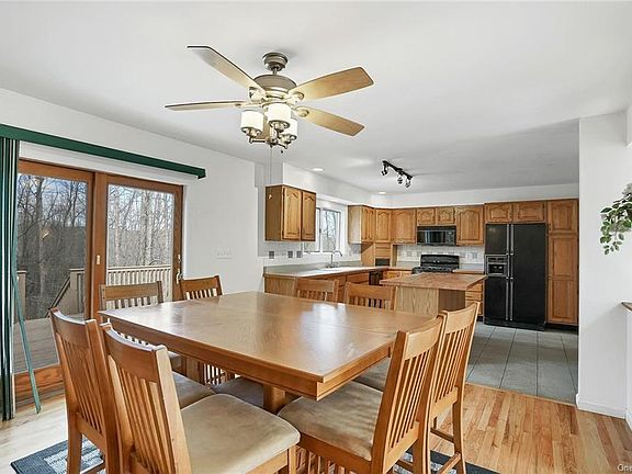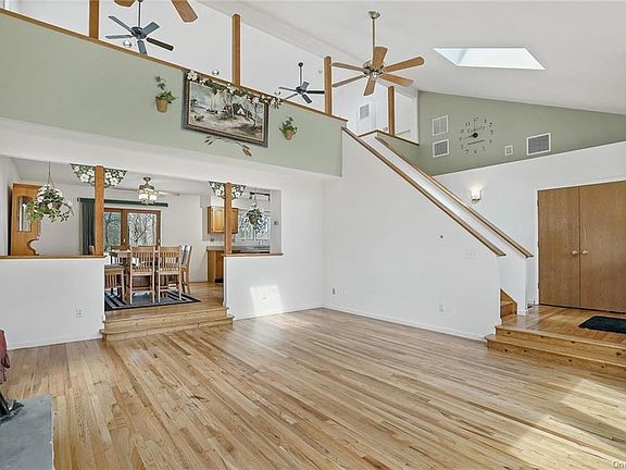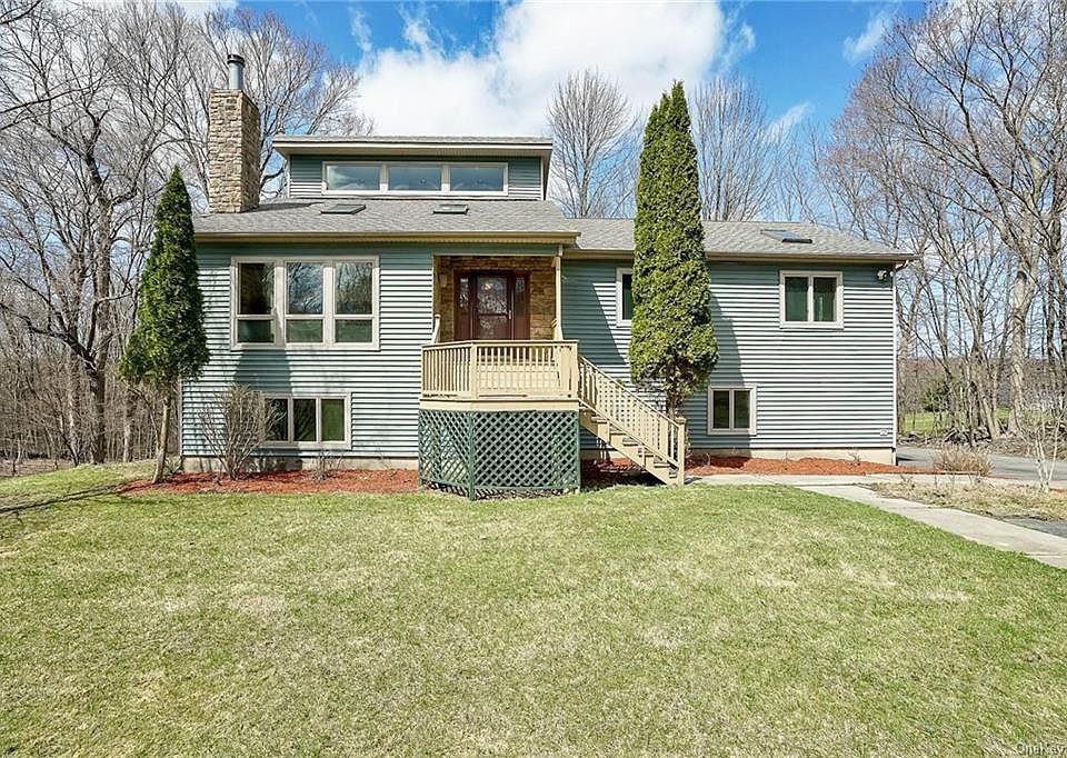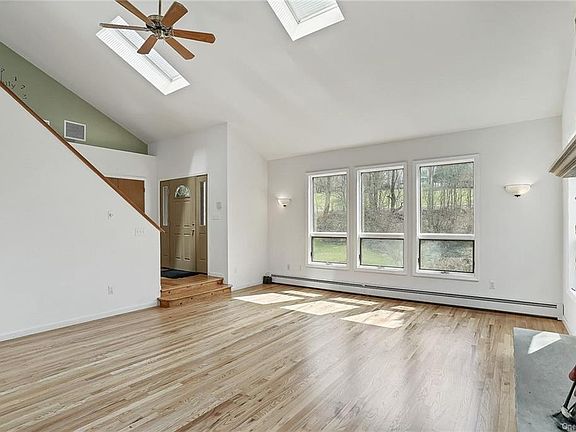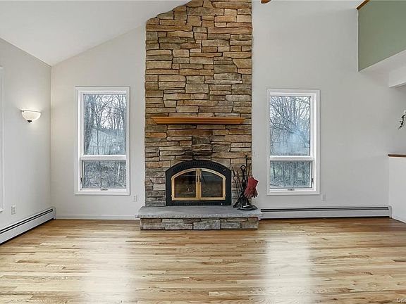 Recently refreshed and back on the market. If contemporary country living is what you are looking for, than this home is for you! Located on 2.5 acres of woodlands with a cattail pond, this home features plenty of open space and charm. Enter into an open concept living room, dining room, kitchen and loft area featuring vaulted ceilings, skylights, hardwood and tile floors as shown. Beautiful floor to vaulted ceiling stone fireplace serves as the focal point for sophisticated living with nature. A master bedroom with vaulted ceilings and charming en-suite that opens out to a deck with wooded views. 2 other large bedrooms and hallway bath complete the living quarters. Finished basement includes rec room and indoor jacuzzi open to patio, and an additional half bath/utility room. 2 car garage and 2 sheds. New roof and above ground oil tank. Out in the country, but 1,5 miles to rail station with trains to NY, NJ, Hoboken and path shuttle to NYC. Close to wineries, parks.
