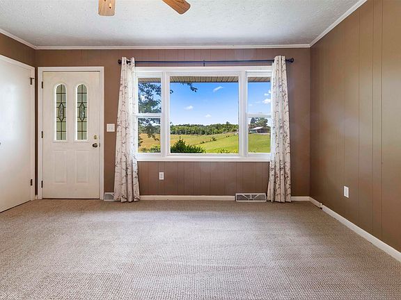 If you're looking for a home with farm views, a flat yard, classic floorplan, mudroom, basement bonus rooms, and an extra large (1,200 sq ft) garage big enough for an RV, it's right here on Wild Cherry Road! Sit on the front porch or patio and look out at the rolling hills. The yard is flat in the front and the back with plenty of room for a garden space. Hardwoods in two bedrooms. Carpeting in the living room, hallway, and stairs to the basement has been professionally cleaned (6/29/21), all gutters & downspouts were replaced in June 2021, new refrigerator & new dishwasher June 2021, fresh mulch in the flower beds, septic pumped June 2021. NEW WINDOWS THROUGHOUT will be installed in the next 2-3 weeks.