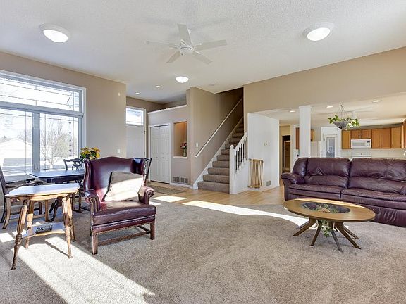 Beautiful 4 bedroom, 3 bathroom Modified two story home. 3 bedrooms located in upper level. Open concept living room with fireplace that flows into the kitchen, additional bonus room for home business. Main floor laundry. Finished lower level family room. 3 season enclosed porch looking out to maintenance free deck. Outdoor sauna for your enjoyment, Connected to walking path. Close to grade school and easy highway access.